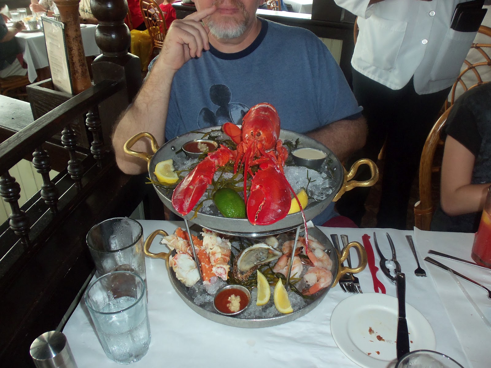 So Mo came back and we made our orders. Jared wanted the kid's macaroni and cheese dinner, choosing carrot and celery sticks as his appetizer, and an ice cream sundae for desert. I started with a bowl of New England clam chowder, and decided on the Pilgrim's Feast.